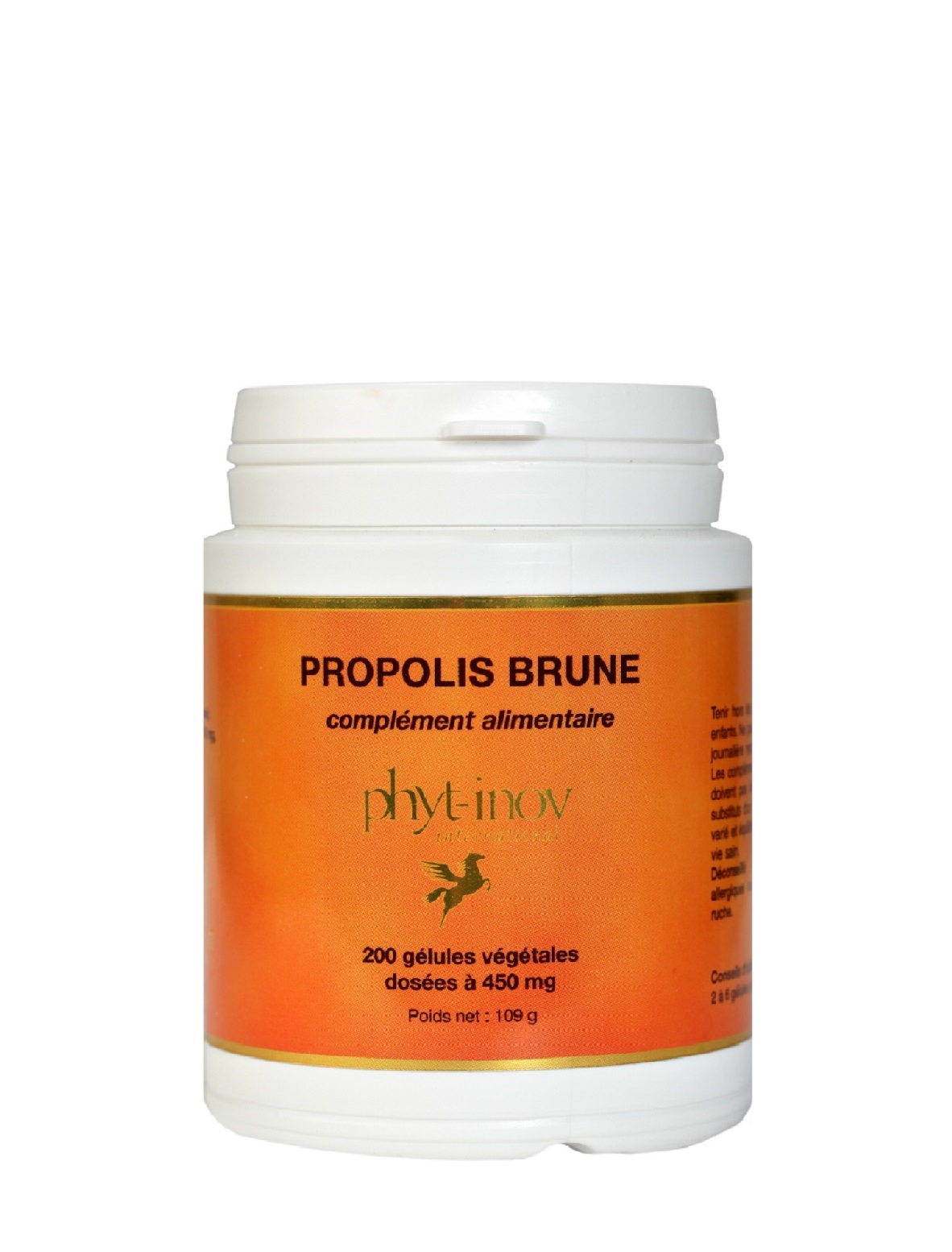 Phyt-Inov, se basant sur les travaux de scientifiques allemands, scandinaves et est-européens, propose un haut dosage dans des gélules contenant 450 mg de propolis purifiée (sans déchets de la ruche, sans cire…).